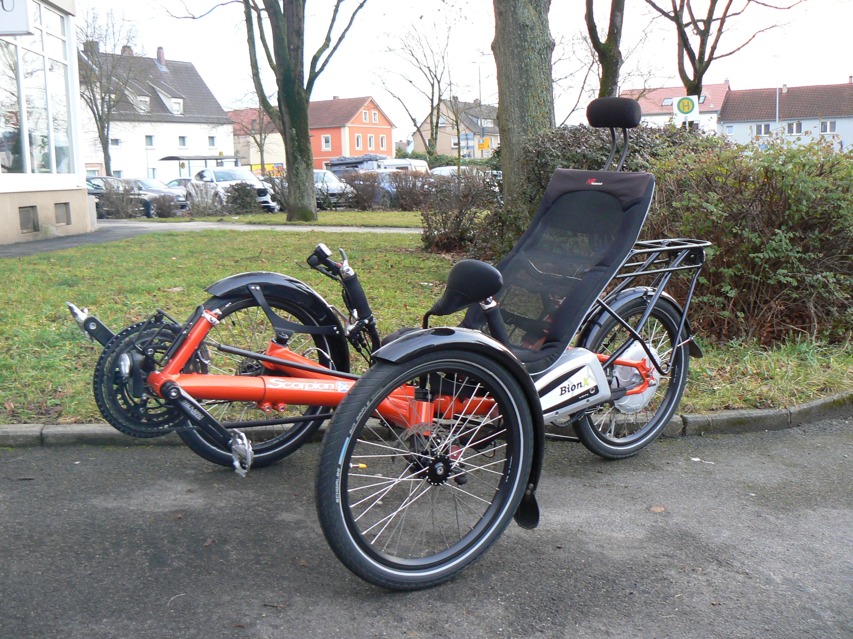faltbares, vollgefedertes Trike mit Neodrives/Pinion,